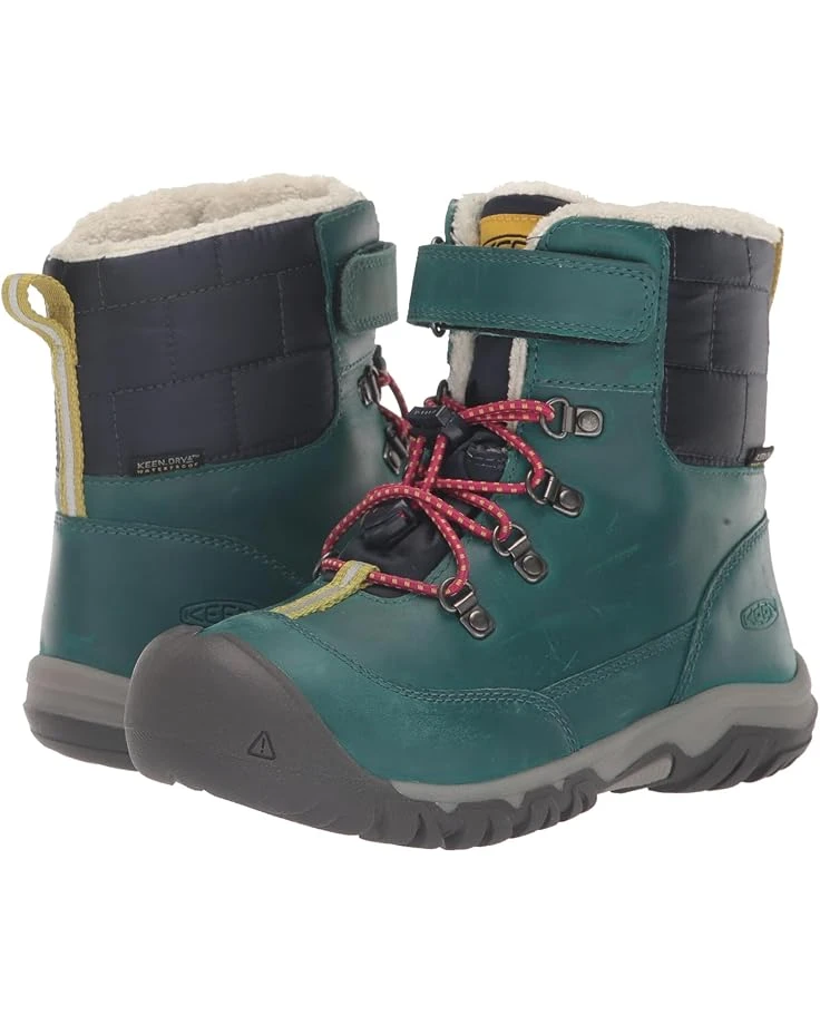 - Let your little one enjoy the first snow by choosing the KEEN® Kids Kanibou Waterproof boots. Designed with waterproof leather and textile upper material and fleece lining for warmth, the stylish boots have 200 g KEEN.WARM insulation for temperatures down to -25ºF/-32ºC. They have KEEN.DRY waterproof, breathable membrane with PFAS-free, durable water repellency, and natural odor control technology.